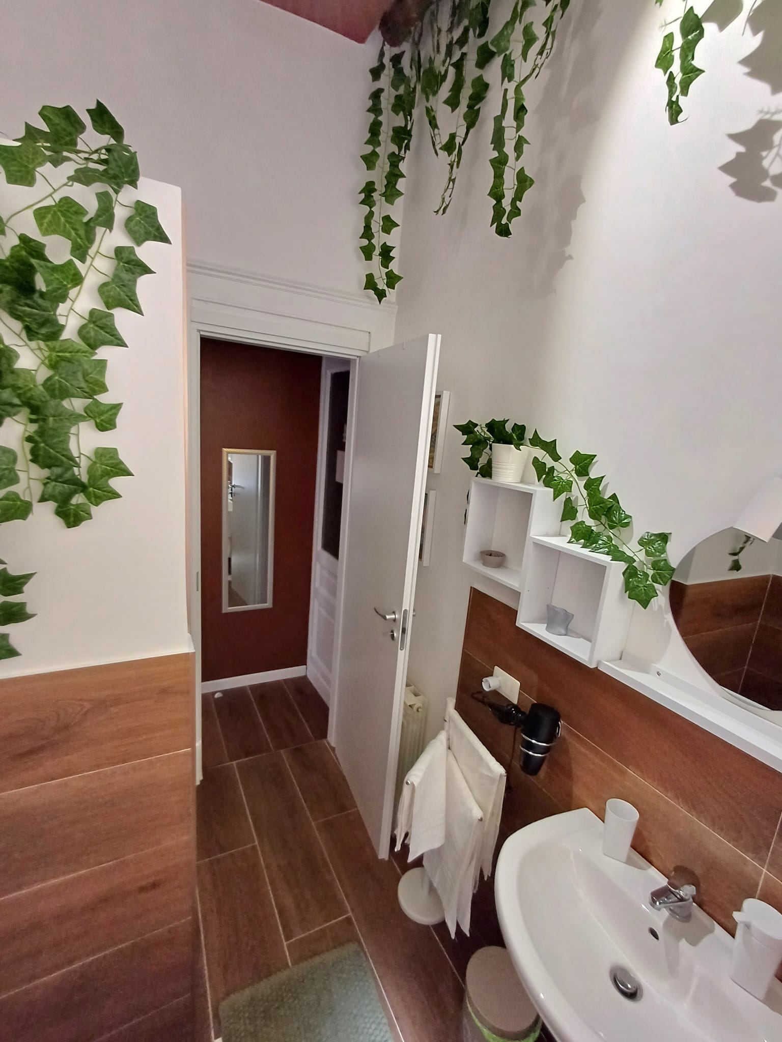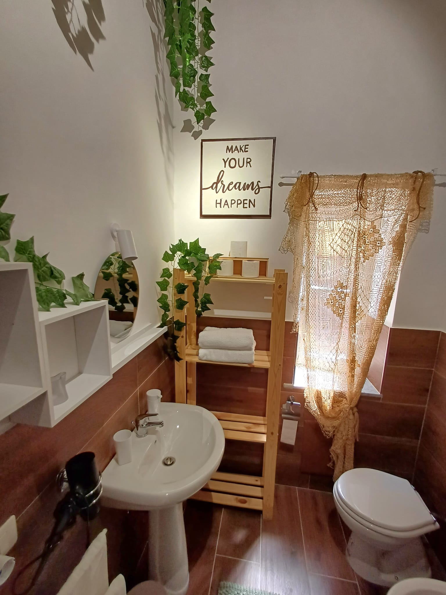 – Bagno privato con doccia, dotato di asciugacapelli e asciugamani